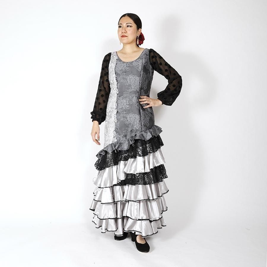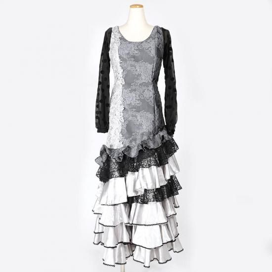 MT3031 7段斜めフリルワンピース<margarita>シルバー・ブラック<☆1点もの☆>2L-140