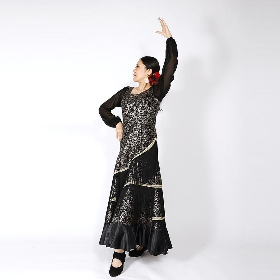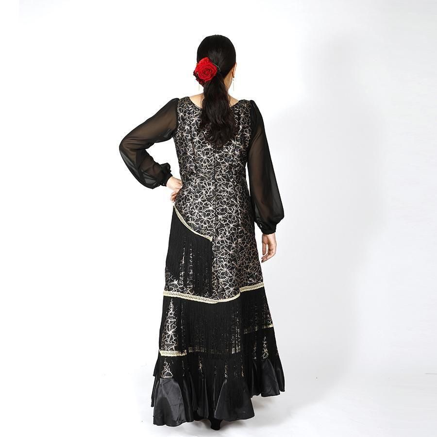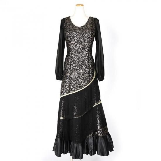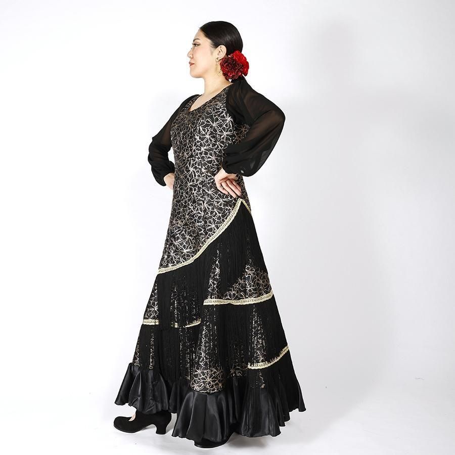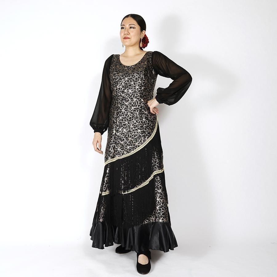MT6031 フレコ付きワンピース<mariposa>ブラック・ゴールド 2L-140<☆1点もの☆>