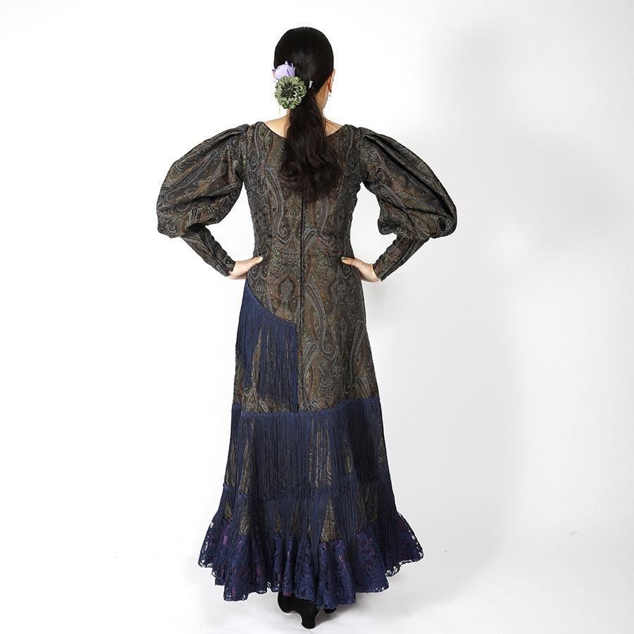 MT6031 フレコ付きワンピース<mariposa>ダークグリーンペイズリー・ネイビー L-140<☆1点もの☆>